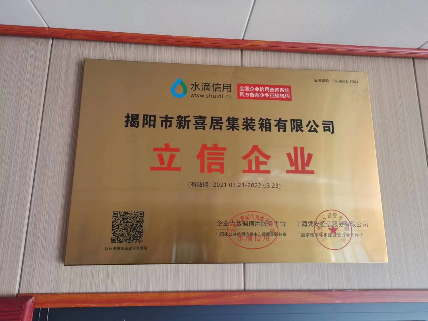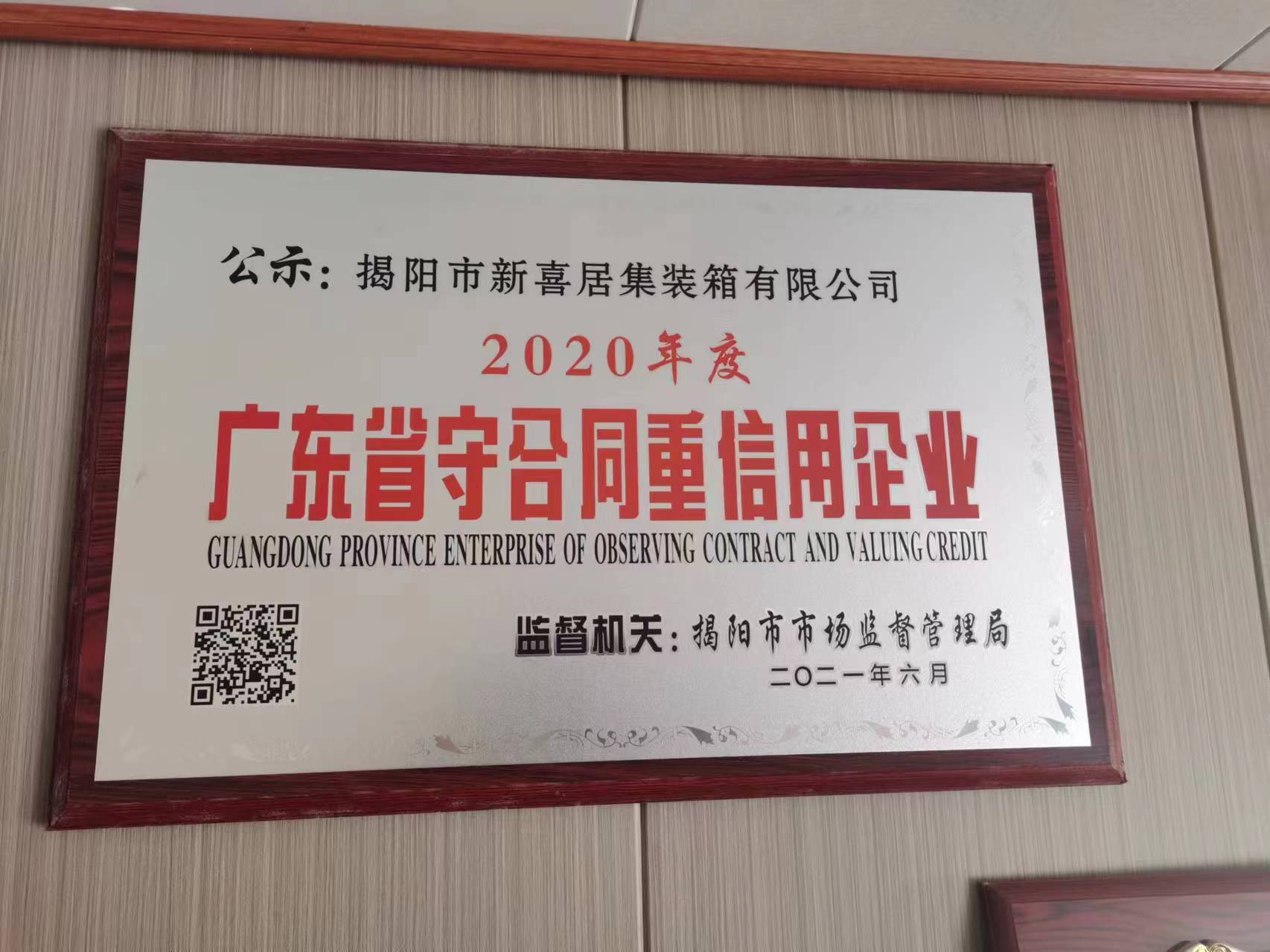 廣東省守合同重信用企業牌匾
