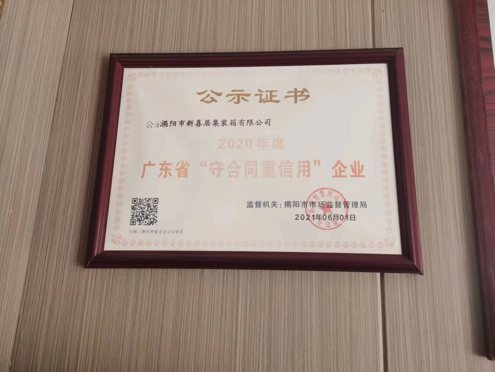廣東省守合同重信用企業證書